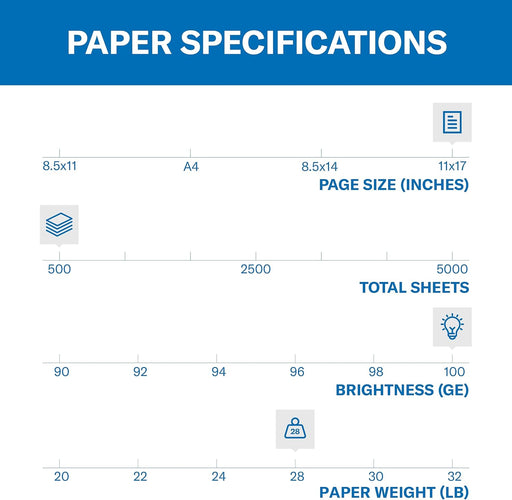 View full detailsHammermill Premium Laser Print 11 x 17, 28 Lbs, 98 Bright 500 Sheets/Ream (125526)